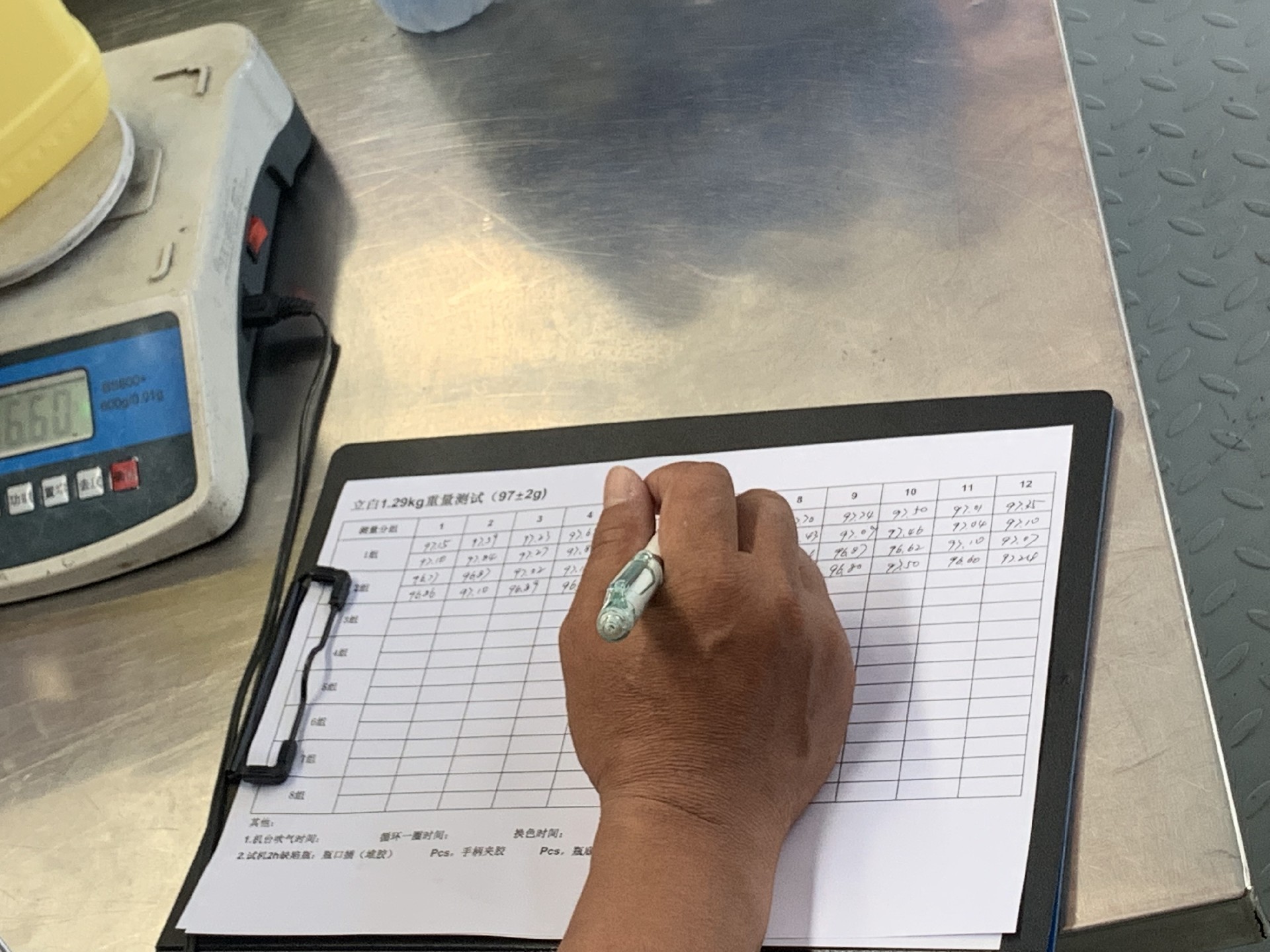 近日,專(zhuān)供洗潔精桶的客戶(hù)來(lái)廠(chǎng)驗收六模高速旋轉吹塑機,首先客戶(hù)從各時(shí)段選出洗潔精桶進(jìn)行克重記錄,其次客戶(hù)從設備機頭、螺桿、電機等各個(gè)方面均進(jìn)行細致檢驗,最后客戶(hù)對設備運轉系統進(jìn)行操作記錄。